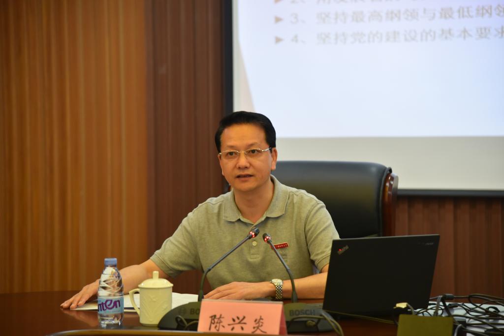 陈兴炎还结合学习习近平总书记系列重要讲话和党章党规,就做合格党员畅谈了认识和体会。他强调,做“四讲四有”合格党员,要做到“五个牢记”:牢记入党誓言,始终践行诺言;牢记政治信仰,始终对党忠诚;牢记根本宗旨,始终为民服务;牢记党的纪律,始终坚守规矩;牢记政治本色,始终积极工作。陈兴炎勉励全体党员同志要继续发扬党的优良传统和奉献精神,努力服务于学校各项重点工作,以更加卓越的工作业绩,为学校的改革发展事业再立新功。