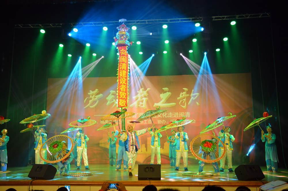 1月12日晚,福建工会“劳动者之歌”文化慰问演出暨福建省农民工“求学圆梦行动”计划启动仪式在闽清县会堂拉开帷幕。闽清县各级劳模、职工近千人到场观看。省委委员、省总工会党组书记丁文清,福州市委常委、统战部长、市总工会主席陈晔,省教育工委副书记刘剑津,校党委书记马国防、校长陈兴炎、副校长陈展虹出席活动。