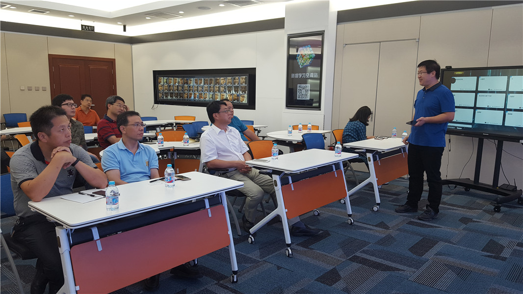 在中关村,陈展虹一行听取了智慧教室改变教育的报告,深入体验智慧教室的现场演示,考察了智能手机远程同屏控制和轻松做动画课件等新技术;大家认为智慧教室的引入对破解我校“二元制”教育教学模式改革提供了积极的思路,运用新的微课制作技术也可以使教师从做动画课件的困境中解脱出来,从而真正专注于教学内容的设计,大大提高微课制作水平和效率。此外,一行人还参观了大数据业务中心和大数据研究院,对大数据的采集、分析及运行原理进行了交流互动。
