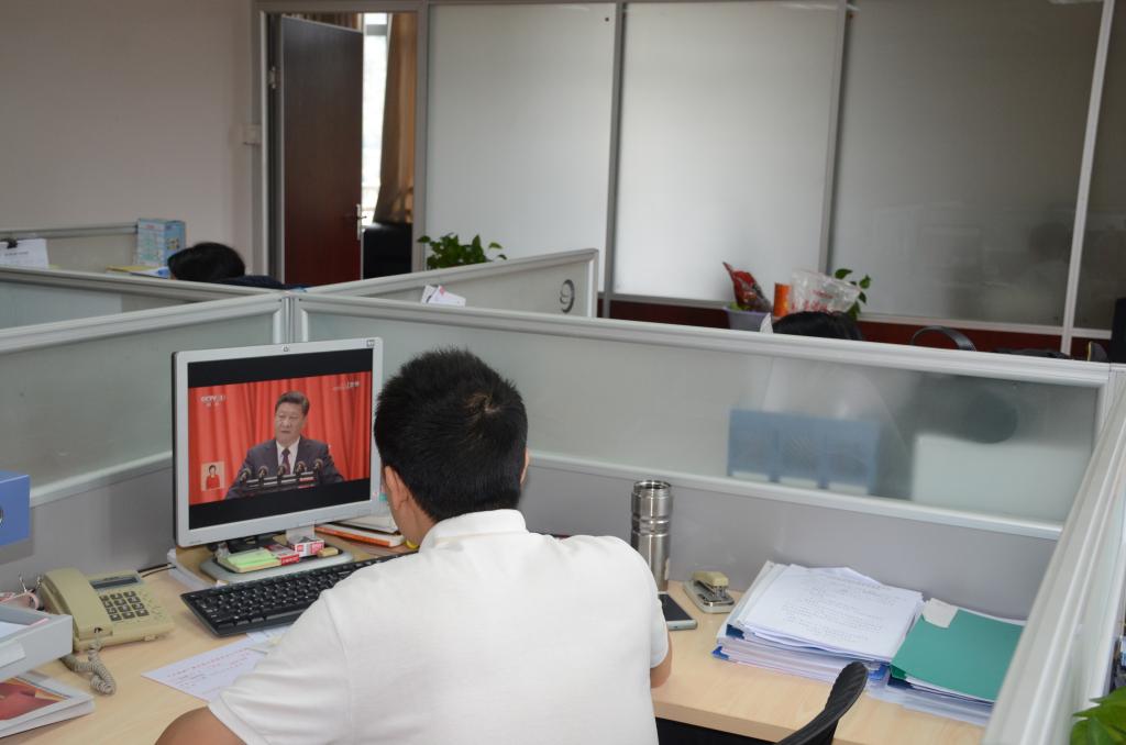 职业学院中层以上干部和学生入党积极分子代表集中收看开幕会