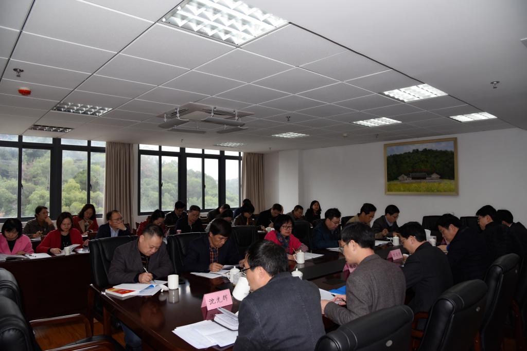 1月23日下午,学校举行2018年党委中心组理论学习第一次(扩大)会,深入学习研讨党的十九大精神和习近平新时代中国特色社会主义思想,为开好2017年度党员干部民主生活会打牢思想基础。会议由党委书记陈兴炎主持,校领导吴国荣、马成斌、陈展虹、沈光辉、王幼新及各部门主要负责人参加了会议。