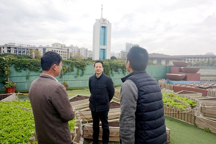 陈兴炎还实地查看了生态菜园、新建机房、茶艺室和茶叶实验室等场所。