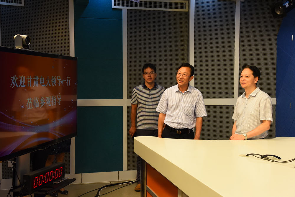 甘肃电大一行还参观了学校多媒体演播中心、编辑中心、电视制作中心、数字学习体验中心、高铁模拟牵引变电所和运输沙盘室等。
