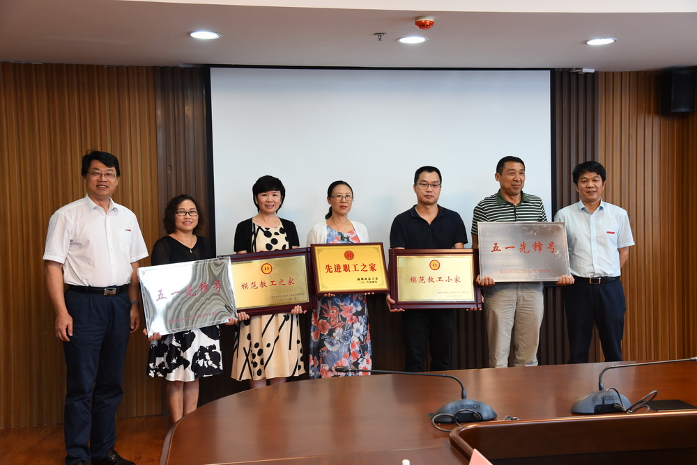 向受到省、市工会系统表彰的5个集体颁发荣誉牌匾