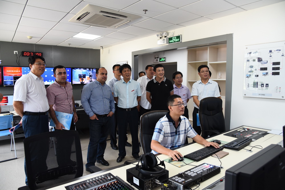 随后,Usmonzoda Ibrohim一行实地参观了学校实景演播室、虚拟演播室、视频编辑中心、数字学习体验中心等,并与现场工作人员进行了交流和互动。