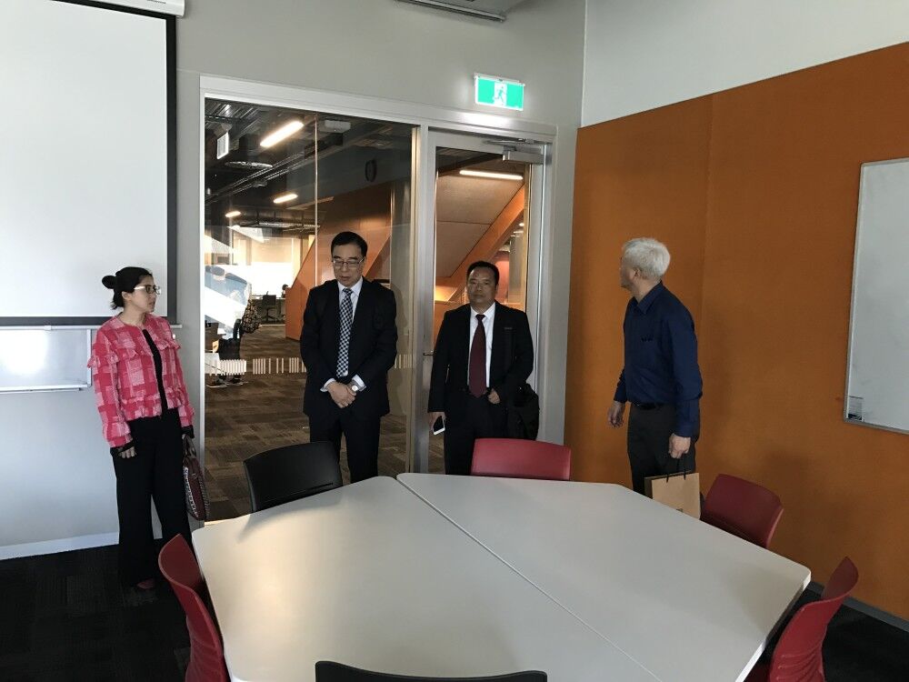 奥克兰理工大学是新西兰八所公立大学之一,2018-2019QS世界大学排名第464位。在奥克兰理工大学访问期间,沈光辉一行与该校信息技术与软件工程系主任Edmund Lai教授以及其他相关负责人举行会谈。双方就健康数据分析、人工智能等方面的情况进行了深入交流,并就加强两校间交流合作达成了共识。会谈结束后,代表团一行参观了该校现代化教室以及其它教学设施。