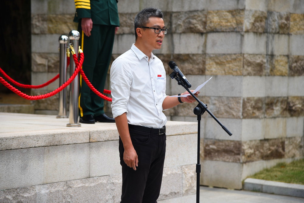 理工学院教师黄林昊和职业学院学生张孟菲分别代表师生发表国旗下感言,黄林昊以《不忘初心,争做新时代“四有”好教师》为题,号召全校教师不忘初心、牢记使命、立德树人,做新时代好教师;张孟菲以《珍惜当下》为主题,号召全体同学珍惜时光、刻苦学习、奋发有为,做社会主义建设者和接班人,以实际行动向共和国70华诞献礼。