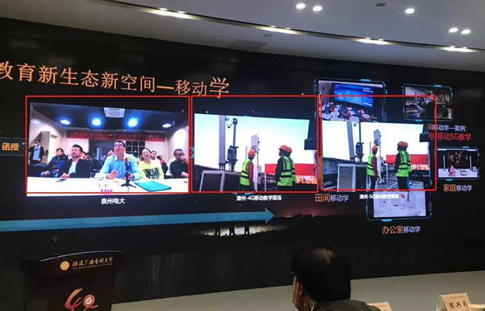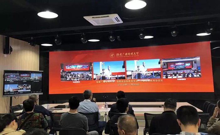 在高峰论坛的“新时代远程教育创新与开放大学发展”分论坛中,由副校长陈展虹教授主持“福建广播电视大学5G智慧时代远程教育教学创新实践”环节,采用基于5G网络智慧教室环境实现了多地、多接入、多场景连接的创新课堂教学,直观地展现了未来远程教育新生态;借助智慧教室,论坛特邀北京大学教育学院文东茅教授在其办公室进行异地授课,利用分屏技术将会场屏幕分成三个区域资源分别展示视频、PPT和实时手写电子板书;在与泉州电大、左海智慧教室并班教学时通过多路远程视频接入,打造多地同步课堂;以漳州5G技术培训现场视频直播为例,展示了教师可在田间地头、厂房车间实时进行移动直播教学的功能;场外观众使用手机APP或者微信扫二维码,实时便捷地观看论坛高清直播;论坛结束后可生成自带主题索引的高清视频资源,便于观众快速准确回看。远程教育创新技术与实践应用的成果展示和专家学者理论研究分享的结合把高峰论坛推向了新的境界。