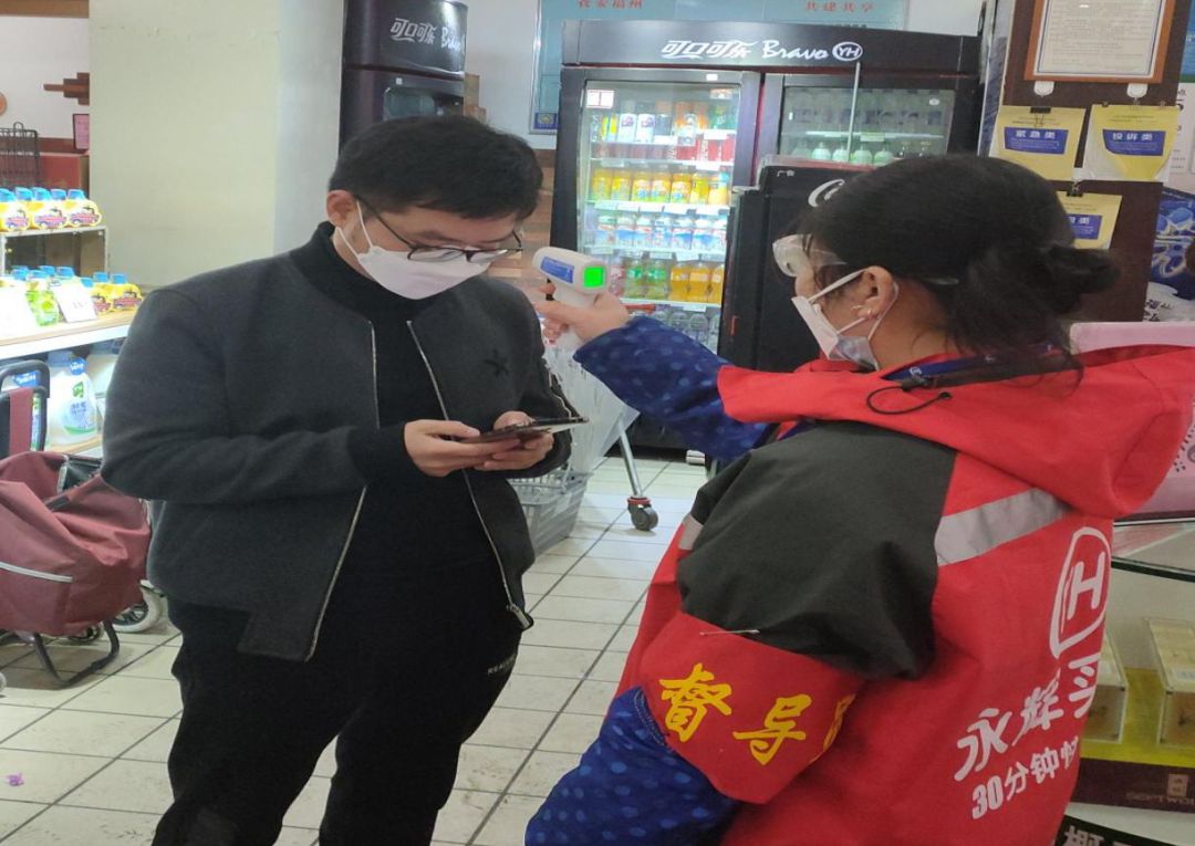 陈水玲为超市消费者测量体温