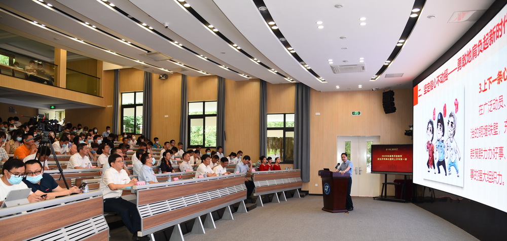 党委书记陈兴炎以《坚定信心共克时艰 不负韶华逐梦前行》为题,为新生开讲第一课。他深情回顾了广播电视大学成立渊源和福建广播电视大学光辉的发展历程,介绍了学校以“12335”工作模式助力青年成长、“三全育人”抓落实的情况,并从“了解疫情中的‘中国之治’,坚定对国家的信心”,“福建电大与你共成长,坚定对学校的信心”,“不负韶华逐梦前行,坚定对自己的信心”三个方面,要求大家坚定信心不动摇,传承“自强弘毅,励学敦行”的校训精神,勇于担当,奋发有为,自觉融入到新时代新福建建设之中,努力为实现中华民族伟大复兴的“中国梦”添砖加瓦。