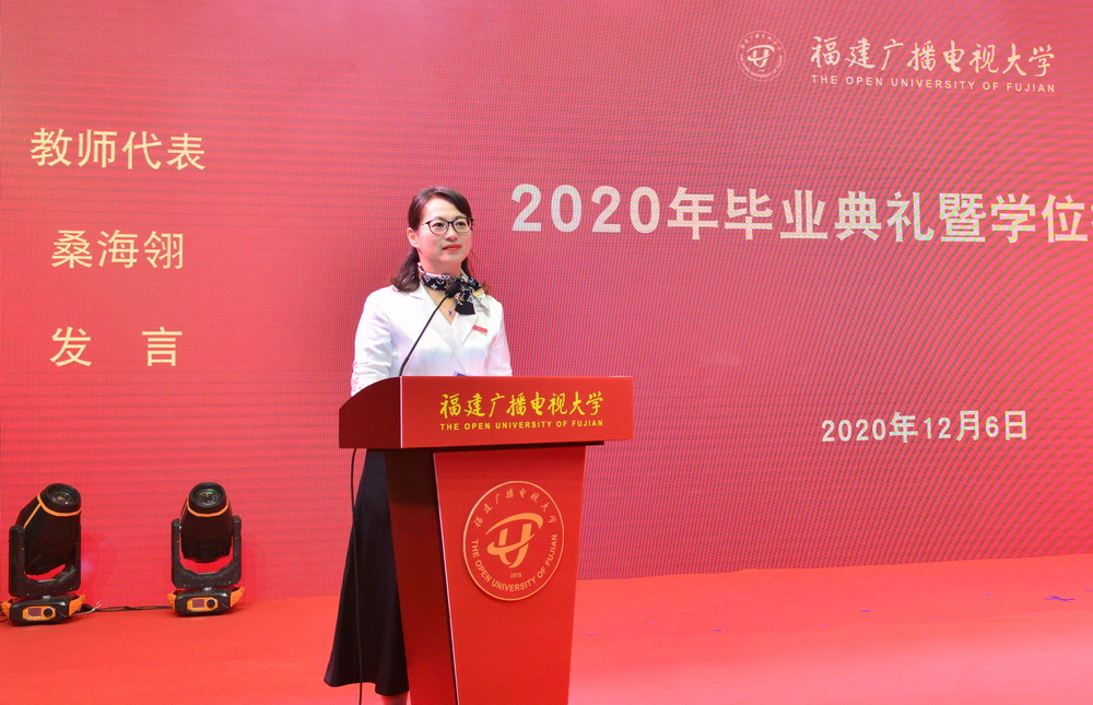 12月6日,福建电大2020年毕业典礼暨学位授予仪式的会场热情似火。校领导,国开学位评定委员会委员,相关部门、学院负责人,各学院系主任、教师代表、毕业生班主任,全省获得学位的毕业生及其他毕业生代表欢聚一堂,热烈庆祝莘莘学子完成学业,开启人生新征程。