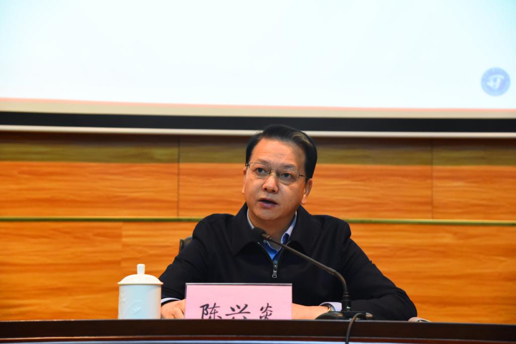 陈兴炎提出,要以党的十九届五中全会精神为引领,贯彻新发展理念,构建新发展格局,推动学校转型发展高质量发展。要深入调查研究、广泛凝聚共识、找实项目支撑,科学编制学校“十四五”规划,形成前后贯通、基础夯实的规划体系。要找准发展定位,主动服务全民终身学习、为推动产业结构优化升级提供人才支撑、巩固拓展教育脱贫攻坚成果、扎实开展老年教育、加大对外交流合作力度,全方位推动高质量发展超越。要注重改革创新,深化成人学生思想政治工作改革创新、持续推进教学改革、提升科学研究水平、强化信息化支撑、做精品学习资源、加强教师队伍建设,补短板强弱项创特色。要坚持底线思维,统筹谋划全局、主动防御风险、夯实工作责任,防范化解重大风险问题。要构建系统完备的学校制度体系、完善学校治理结构、营造浓厚法治氛围,全面提升依法治校的能力和水平。