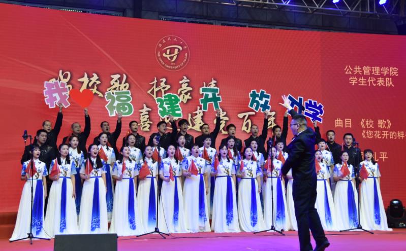 为庆祝福建开放大学更名揭牌、校歌诞生,以及喜迎建党百年,12月29日,以“唱校歌 抒豪情 喜迎建党百年”为主题的师生歌咏比赛在桂山校区体育馆隆重举行。由省校师生组成的10支代表队参加比赛。党委书记陈兴炎、副书记马成斌、纪委书记王幼新出席比赛现场。