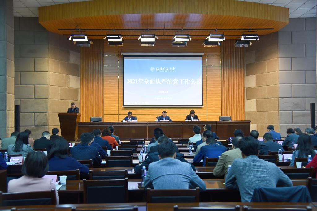 4月8日下午,学校在桂山校区博厚楼会议厅召开2021年全面从严治党工作会议,深入学习贯彻习近平新时代中国特色社会主义思想和党的十九届五中全会精神,学习贯彻十九届中央纪委五次全会和省纪委十届六次全会精神,总结回顾2020年学校全面从严治党工作,部署安排2021年重点工作任务。党委书记陈兴炎出席会议并讲话,党委副书记、校长吴国荣主持会议。校领导马成斌、沈光辉、王幼新、李正光参加会议。