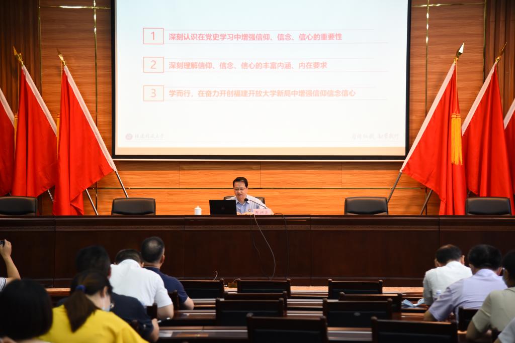 专题党课上,陈兴炎从“为什么要增信、增什么样的信、怎么样增信”等三个方面,生动阐述了在党史学习中增强信仰、信念、信心的重要性及其丰富内涵和内在要求,要求广大党员要学而行,在奋力开创福建开放大学新局中增强信仰、信念、信心。