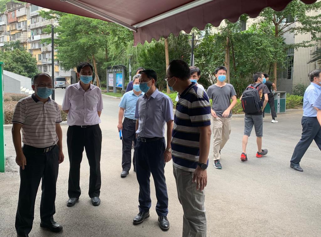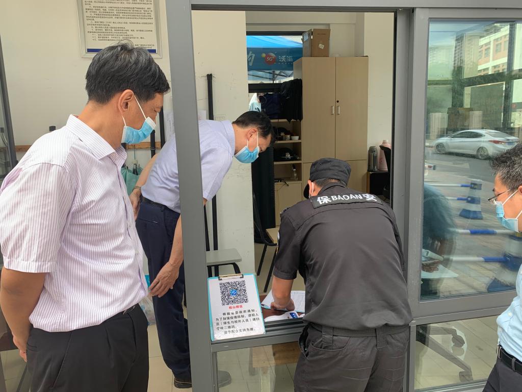 9月17日上午,党委书记陈兴炎深入校园一线,检查指导疫情防控工作,推动各项疫情防控措施落细落实。纪委书记王幼新参加检查。