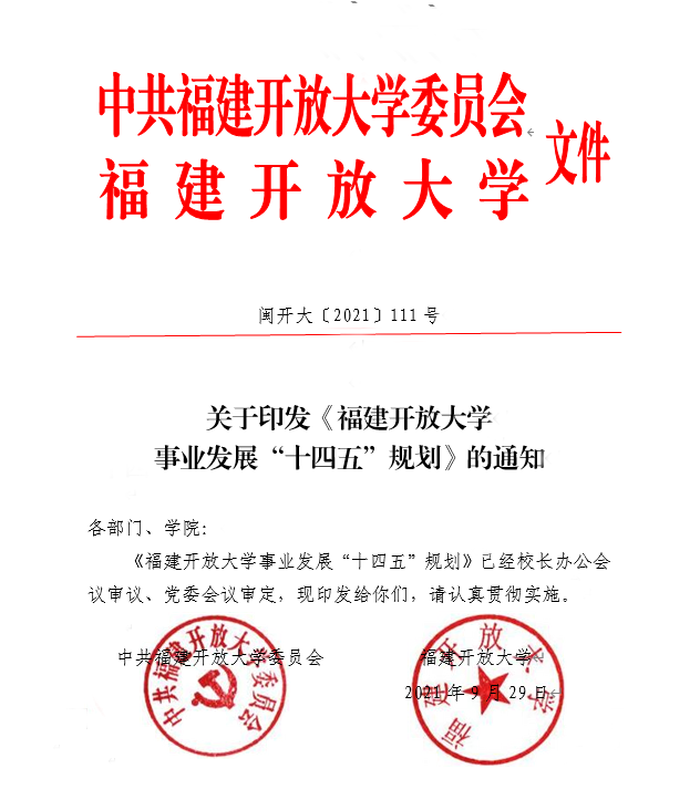 近日,《福建开放大学事业发展“十四五”规划》正式面向全省办学系统印发实施。