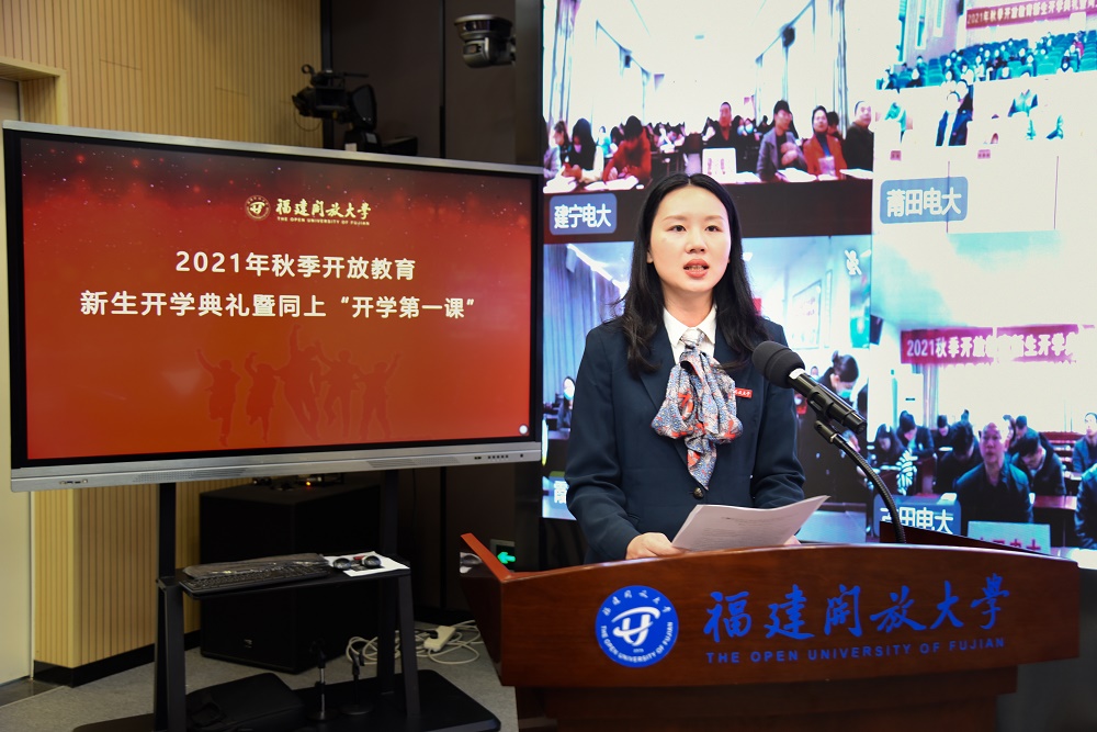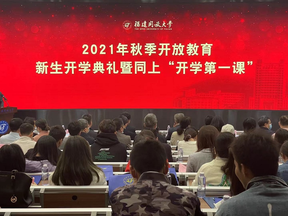10月23日上午,福建开放大学举办全省办学系统开放教育新生开学典礼,并同上“开学第一课”。校领导陈兴炎、吴国荣、马成斌、王幼新与学校相关部门负责人和教师、班主任,以及全省各市县电大、教学点2021年秋季入学的19900多名新生通过现场、分会场和“云参与”方式参加活动。典礼由校党委副书记马成斌主持。
