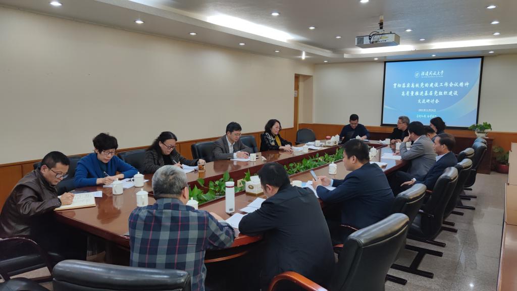 会议深入学习了全国、全省高校党的建设工作会议精神及学校党委的贯彻落实意见。各党总支、党支部书记紧扣高质量推进基层党组织建设主题,围绕贯彻落实学院党总支委员会会议议事规则和党政联席会议议事规则、完善“四位一体”组织体系、强化党总支督促指导职能、推进“学习·诊断·建设”行动,推动“对标争先”计划、加强“双带头人”教师党支部建设,强化基层党组织政治功能,推动党建和事业发展相互融合等工作,畅所欲言、广泛交流,会议气氛热烈、内容丰富,达到了互相借鉴、共同提高的目的。