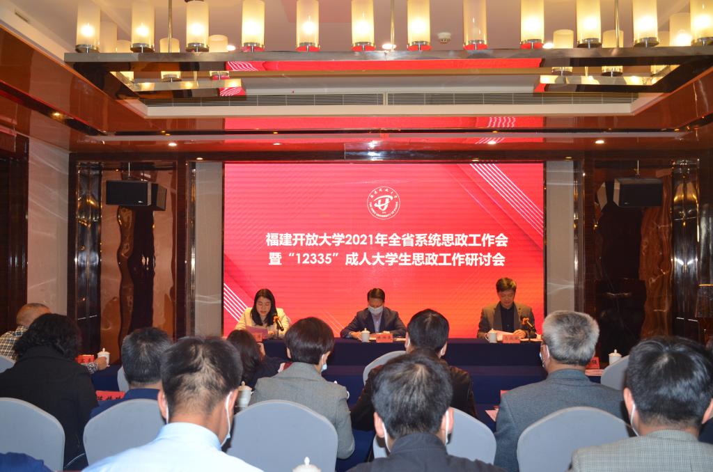 为深入学习贯彻习近平新时代中国特色社会主义思想和党的十九届六中全会精神,落实成人教育立德树人根本任务,总结两年来学校“12335”思政工作模式实施的阶段性成效,进一步推动新时代全省办学系统思想政治工作同向同行、协调开展,12月14日,学校2021年全省系统思政工作会暨“12335”成人大学生思政工作研讨会在三明市沙县区召开。党委书记陈兴炎,沙县区副区长邓秋萍出席会议。会议由党委副书记马成斌主持。