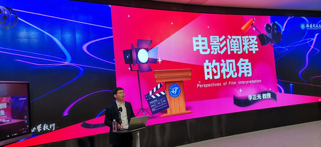 12月23日下午,副校长李正光教授为全省办学系统作题为“电影阐释的视角”的专题学术讲座。讲座采用线下、线上相关结合的方式进行。在桂山校区智慧教室,150多位师生参加讲座,全省办学系统师生500多人线上参加讲座。讲座由科研处处长张玲主持。此次讲座是学校首届学术活动月系列活动的最后一场学术讲座。