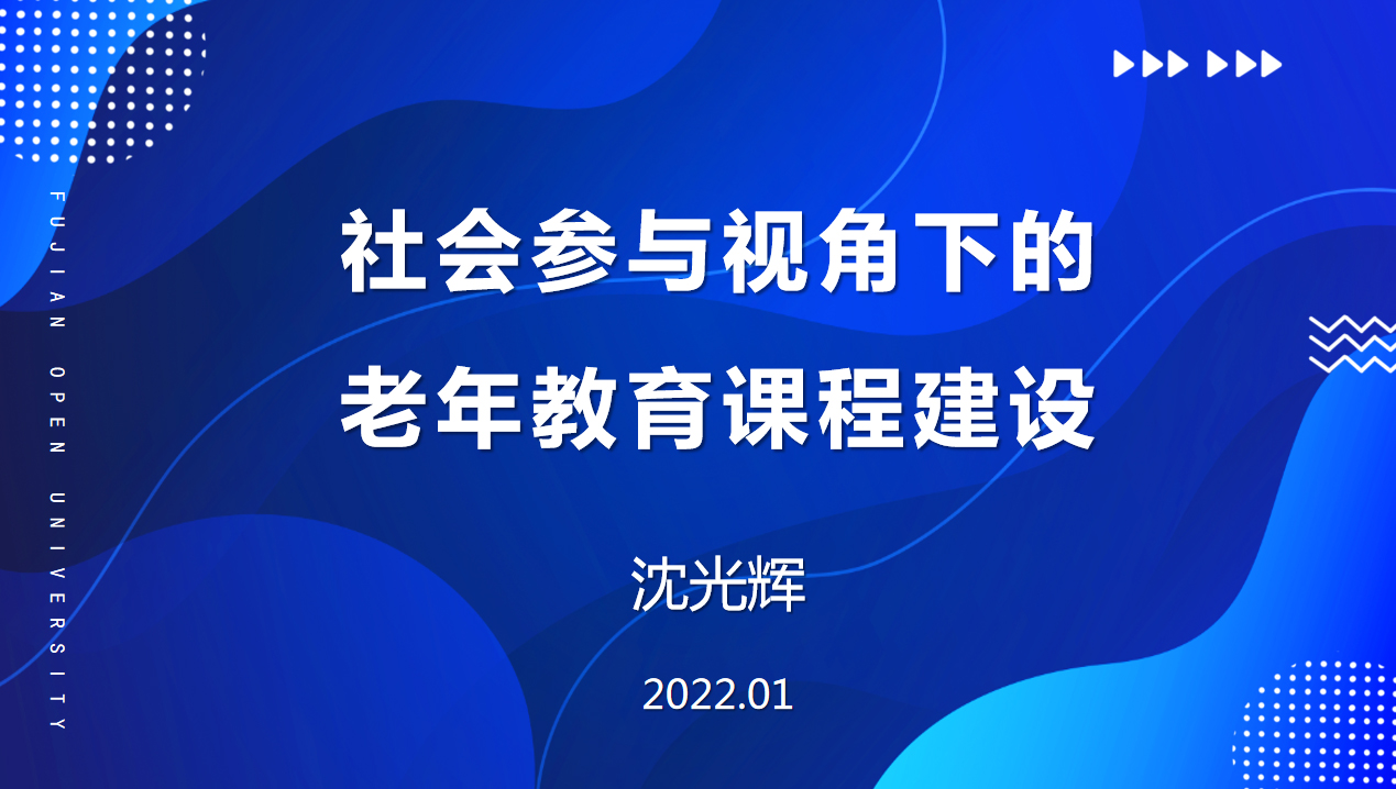 沈光辉通过连线直播方式作了《社会参与视角下的老年教育课程建设》主题报告。以老年人社会参与的概念与理论为切入点,站位社会参与视角下老年教育课程建设,探讨老年教育课程建设相关问题,提出老年教育课程体系构建策略。分析了学术界聚焦的社会交换、社会资本、积极老龄化理论视角,从以马斯洛需求层次理论和麦克拉斯基需求幅度理论为主的需求动机与层次出发,提出了自己关于老年教育课程建设的思路,从以促进社会参与为目标的课程建设理念、构建多元与分层的课程体系、加强课程建设规划与指导以及建立课程评价与反馈机制四个角度提出了老年教育课程体系构建策略。报告问题分析深刻、举措列举详尽、思考定位清晰、直播效果良好,并现场回答了全国嘉宾的提问,引发了与会人员的共鸣。