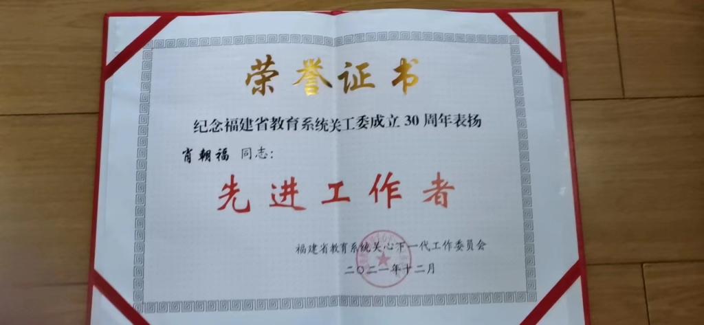 近日,福建省教育厅发布《关于表扬全省教育系统关心下一代工作先进集体和先进工作者的通报》(闽教关委[2021]34号)文件,表彰了全省教育系统关心下一代工作中涌现出来的先进单位和先进工作者,授予53个集体“全省教育系统关心下一代工作先进集体”荣誉称号;授予111名同志“全省教育系统关心下一代工作先进工作者”荣誉称号,充分调动广大“五老”工作的积极性,提升基层“五好”关工委的创建水平。我校关工委获得“全省教育系统关心下一代工作先进集体”荣誉称号,关工委常务副主任肖朝福获得“全省教育系统关心下一代工作先进工作者”荣誉称号。