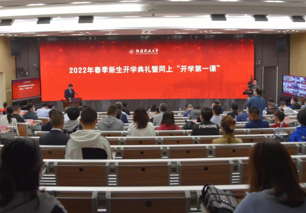 党委书记陈兴炎以《从百年党史中汲取力量 在新时代路上勇毅前行》为题,为新生上“开学第一课”。他用开天辟地、改天换地、翻天覆地和惊天动地4个成语回顾了党的百年历程,希望同学们从百年党史中汲取奋斗前行的力量。他回顾了一代又一代的福建开大人坚守初心,砥砺前行,艰苦创业的发展历程,激励广大青年学子传承红色基因,在青春的赛道上奋力奔跑。他从自强励学,获得知识技能的提升;惟实励新,培养就业创业的能力;修身立德,磨练做人做事的本领;坚定信念,增强价值观念的认同四个方面,勉励大家把对祖国血浓于水、与人民同呼吸共命运的情感贯穿学业全过程、融汇在事业追求中,努力成长为堪当民族复兴重任的时代新人。