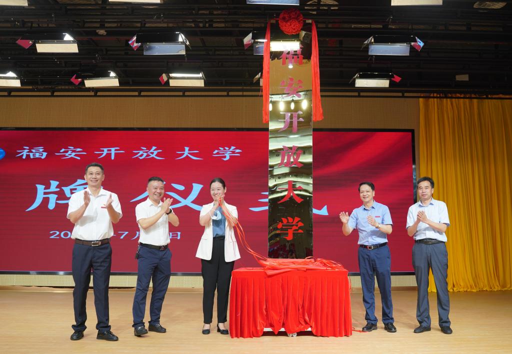 7月6日上午,福安开放大学举行揭牌仪式。校党委书记陈兴炎到会致辞并为福安开放大学揭牌。