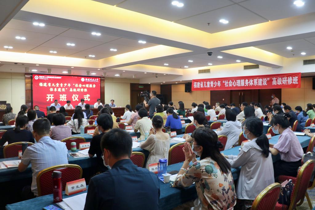 8月11日上午,由福建省人力资源和社会保障厅主办、我校承办的福建省首届儿童青少年“社会心理服务体系建设”高级研修班在南平市隆重开班。校党委副书记、校长吴国荣,省人力资源和社会保障厅副厅长洪长春、职业能力建设处处长陈朱龙,福建师范大学心理学院二级教授、博导连榕应邀出席开班式。来自全省各地市的中小学、高校心理健康教育骨干教师和省委精神文明办、省委网信办、省卫健委、省人社厅、省民政厅、团省委、省妇联代表等共92人参加。培训学院院长江克英主持开班式。