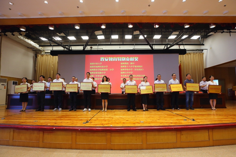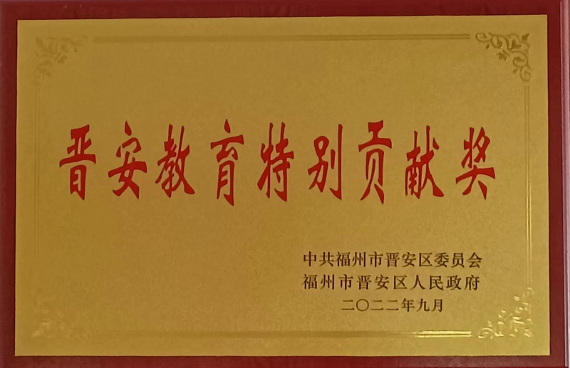 在教师节来临前夕,晋安区召开以“迎接党的二十大,培根铸魂育新人”为主题的庆祝第38个教师节暨教育强区推进大会,会上,我校荣获“晋安教育特别贡献奖”。