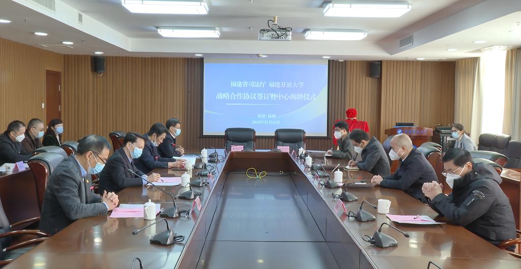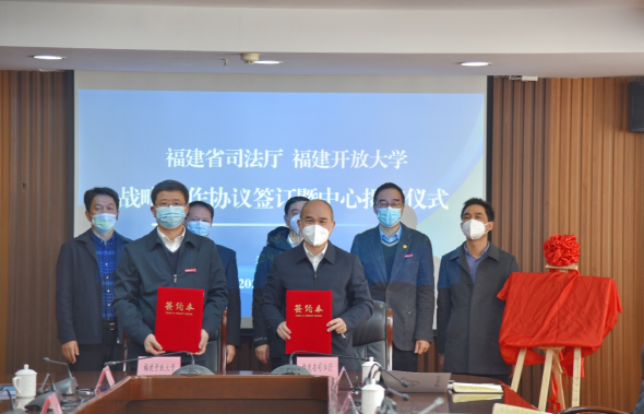 12月21日上午,福建开放大学与福建省司法厅战略合作协议签订暨福建省矫正教育中心揭牌仪式在学校桂山校区明德楼1405会议室举行。学校党委书记陈兴炎,党委副书记、校长吴国荣,副校长沈光辉,副校长李正光与省司法厅党委委员、副厅长柯南木,二级巡视员、社区矫正管理局局长黄世庚等出席仪式。