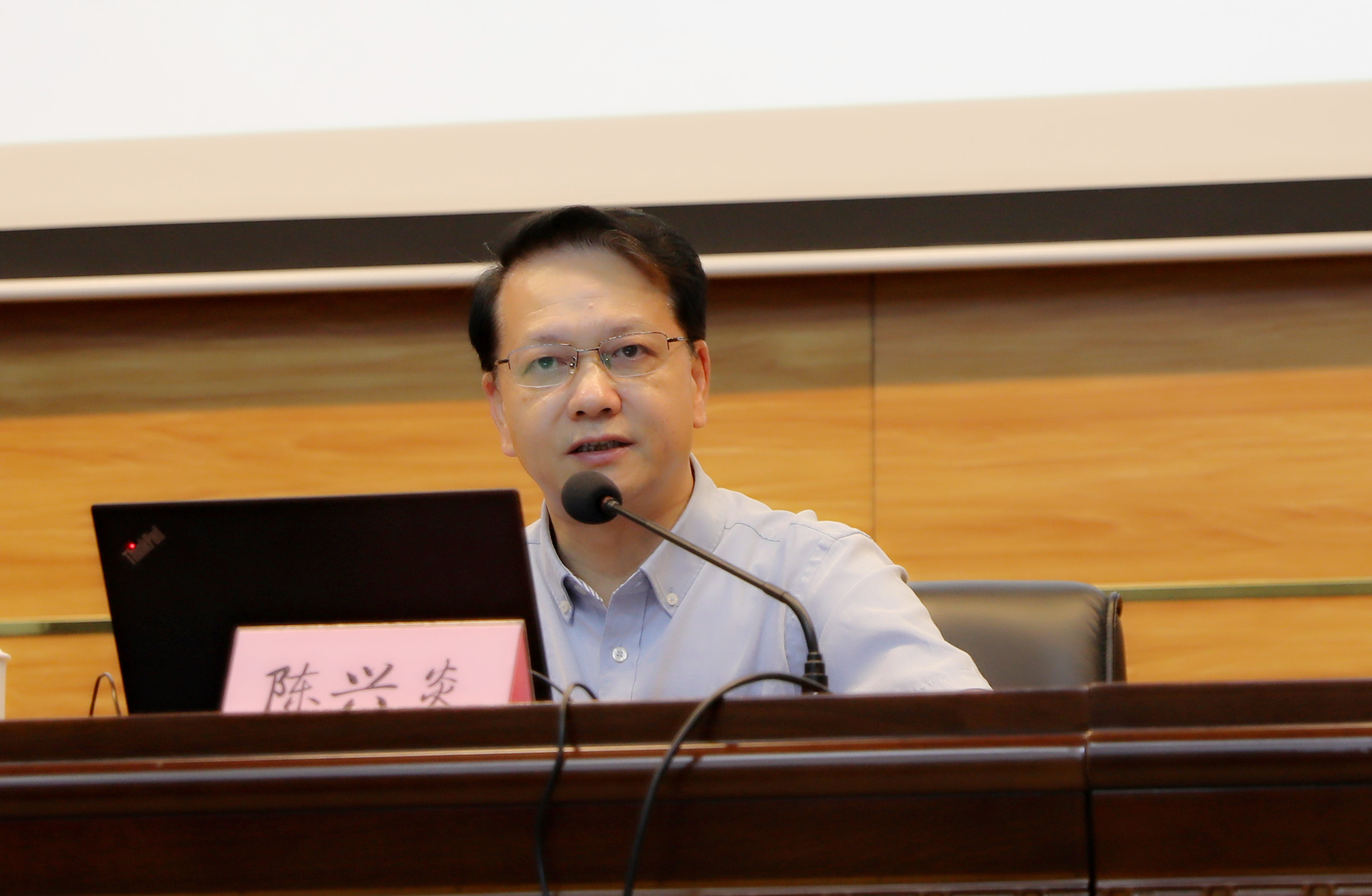 陈兴炎要求,一要坚持以人民为中心发展教育的价值追求,准确把握坚持以人民为中心发展教育与办好人民满意的教育之间的辩证关系,全面落实党的教育方针,遵循教育规律和人才成长规律,立足工作实际不断增强人民群众教育获得感。二要服务学习型社会建设,办人民满意的继续教育,坚持立德树人,用新思想铸魂育人;深化内涵发展,提高人才培养质量;促进教育公平,服务全民终身学习;突出创新融合,加强对外交流合作。三要带头践行“以人民为中心”的发展思想,以学铸魂,坚定理想信念,在增强党性、提升修养上下功夫;以学增智,强化宗旨意识,在增强本领、服务师生上下功夫;以学正风,严格要求自己,在廉洁自律、拒腐防变上下功夫;以学促干,坚持求真务实,在勇于担当、敢于作为上下功夫。