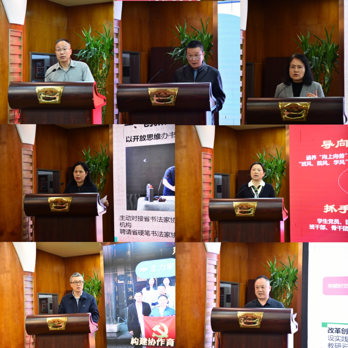 泉州开放大学、宁德开放大学、邵武开放大学、永定开放大学、漳平开放大学、寿宁开放大学和省开大党委宣传部、教务处、学生工作处、文经学院、公共管理学院、理工学院、马克思主义学院负责人围绕2023年思想政治工作重点项目开展情况和下一步工作计划分别作了主题发言。会议还表彰了国家开放大学“大地行走阅读”活动、第九届中国国际“互联网+”大学生创新创业大赛福建开放大学校赛“优秀组织奖”、全省办学体系“十佳班主任”、学生思想政治工作优秀案例评选活动获奖单位。