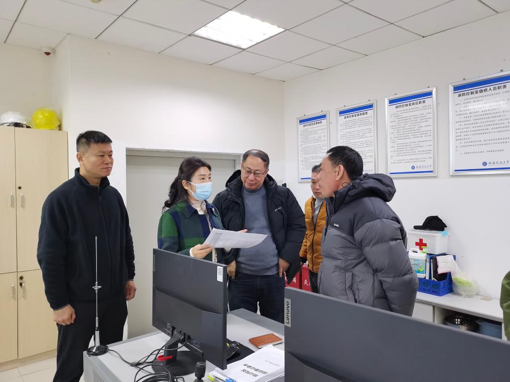 庄莉一行深入桂山校区,随机检查保卫部门、电动车停车棚、学生公寓等场所的消防设施、疏散通道等消防安全措施落实情况,督促指导有关部门全面排查整治消防安全隐患,加强消防安全教育与管理工作。