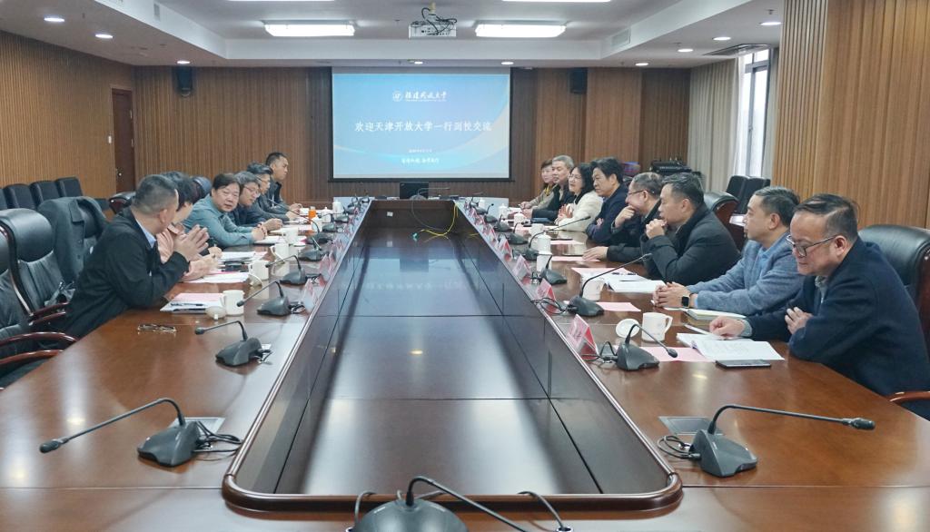 3月11日,天津开放大学党委书记、校长张宗旺一行到校交流。