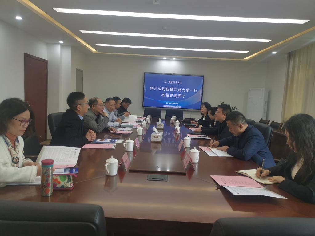 3月20日下午,新疆开放大学党委委员、宣传部部长周国栋,培训学院院长安丰岷一行6人到我校学习交流。校党委委员、副校长吴建铭参加并主持召开座谈会。