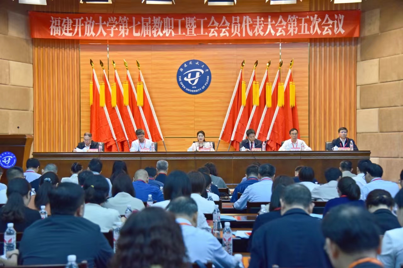 工会常务副主席陈精珠作工会工作报告。大会还书面提请审议《福建开放大学财务工作报告》《福建开放大学工会经费审查报告》,提交《福建开放大学第七届教职工暨工会会员代表大会第四次会议提案办理情况及第五次会议提案征集情况的说明》,关于《福建开放大学第六轮岗位设置与聘用实施办法》征求意见,并组织分团讨论。