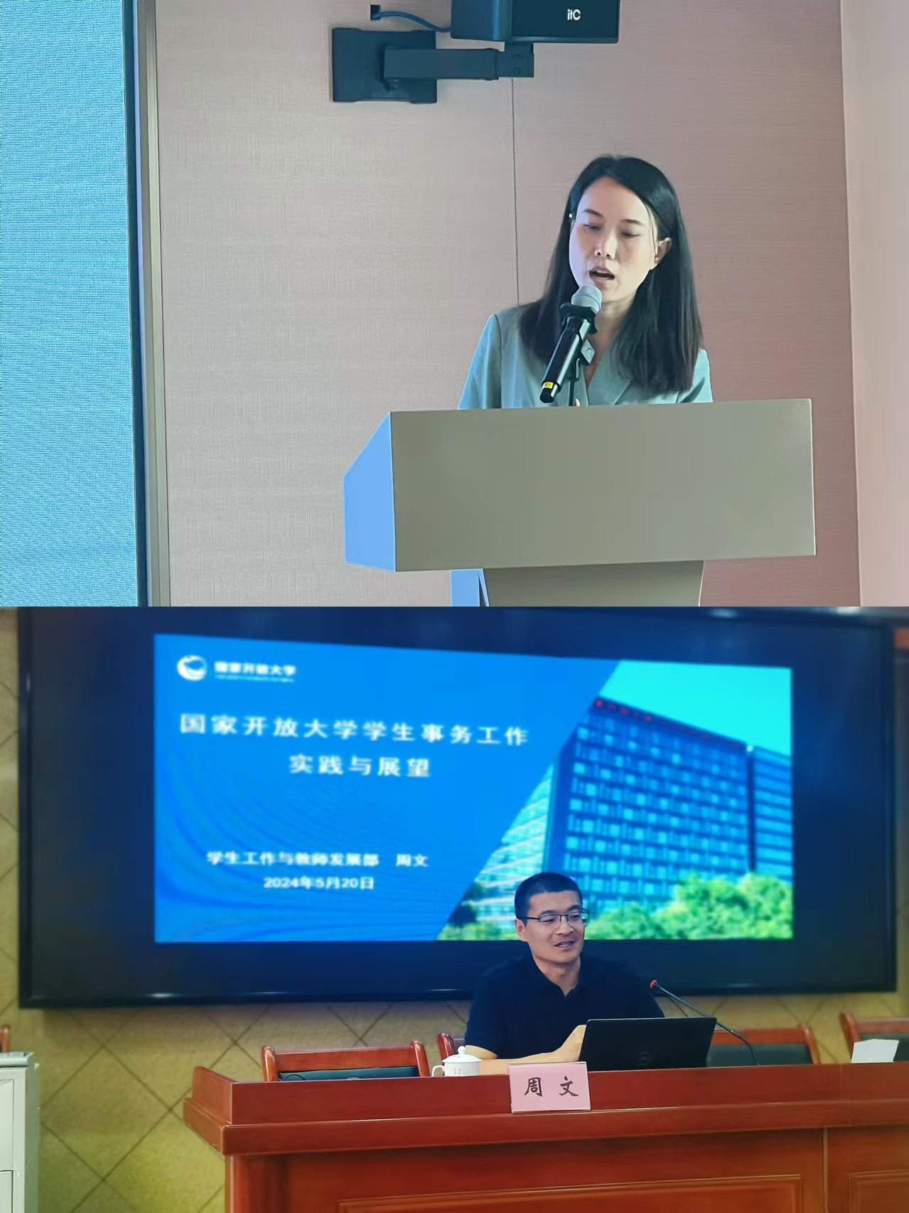 培训班特别邀请了国家开放大学学生工作与教师发展部两位科长到会指导交流。学生教育科科长狄晓暄以《关于创新创业教育的几点认识与思考》为题,全面梳理了开展大学生创新创业教育的发展历程、工作思路和取得的成效,加深了大家对创新创业教育的认知。学生事务科副科长周文以《国家开放大学学生事务工作实践与展望》为题,围绕国家开放大学奖学金和优秀毕业生评选工作,并详细解读相关重点条款,起到了解惑引路的良好成效。