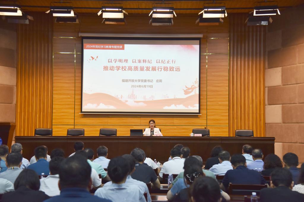 6月19日,校党委书记庄莉以《以学明理 以案释纪 以纪正行 推动学校高质量发展行稳致远》为题讲授纪律专题党课。在家校领导,处级、科级干部,基层党组织书记、纪委委员、纪检委员等120余人参加活动。