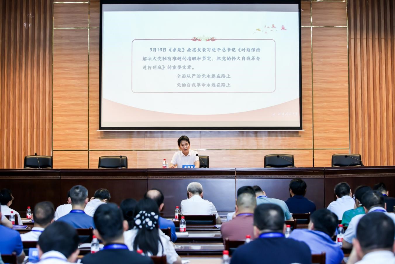 校长吴国荣以“勇于自我革命 推进开放大学转型升级”为题,为湖南开放大学办学体系2024年开放教育办学能力与教学质量提升暑期研修班授课。他从中国共产党最具历史意义的六次自我革命讲起,提出开放大学办学体系要从定位向定力转变、体系向伙伴关系转变、外循环向内循环转变、产品向品牌转变、数量向质量转变、制造向智造转变等六个方面进行自我革命,坚持事业发展稳增长、体制机制促改革、发展模式调结构、终身教育惠民生、内涵建设防风险、立德树人保稳定,加快构建开放大学转型发展新格局。