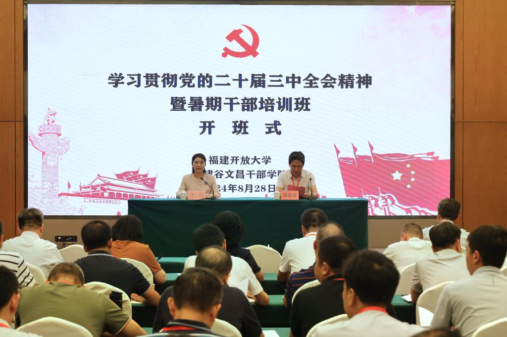 开班式上,党委书记庄莉指出,学习贯彻党的二十届三中全会精神是当前和今后一个时期的一项重大政治任务,她强调,全校党员干部要端正态度学、联系实际学、带着责任学,自觉在形势判断中明晰方向、在改革发展中找准方位、在履职尽责中服务发展、在办学实践中坚定信心,把全会精神转化为加快建设有特色高质量福建开放大学的生动实践。党委副书记、校长吴国荣要求,全体学员要切实增强改革意识,把深入学习贯彻党的二十届三中全会精神与深入实施学校事业发展“十四五”规划、着力推进综合改革有机结合起来,推动全会精神在福建开放大学落地生根、开花结果。