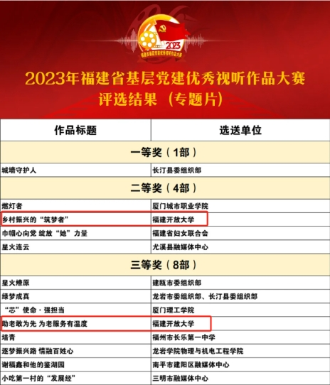 两项党建视听作品获全省基层党建优秀视听作品大赛二、三等奖