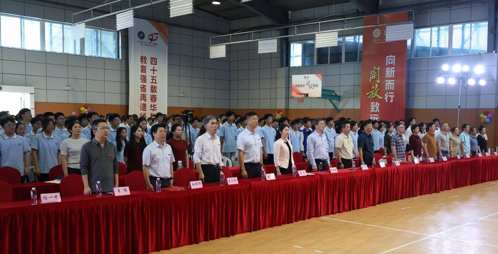 青春如歌,激情似火。5月8日下午,正值广大青年共同学习贯彻习近平总书记重要讲话和给谢依特小学戍边支教西部计划志愿者服务队队员回信精神之际,我校在桂山校区举办以“传承五四薪火 唱响红色旋律”为主题的2025年五四表彰大会暨歌咏比赛。校党委书记庄莉、党委副书记马成斌出席活动,党政办公室、学生工作处、校团委和职业学院负责人,学校2024年度受共青团表彰的先进集体和个人,2025年新接收团员以及团员代表600余人参加会议。会议由校团委书记黄生春主持。