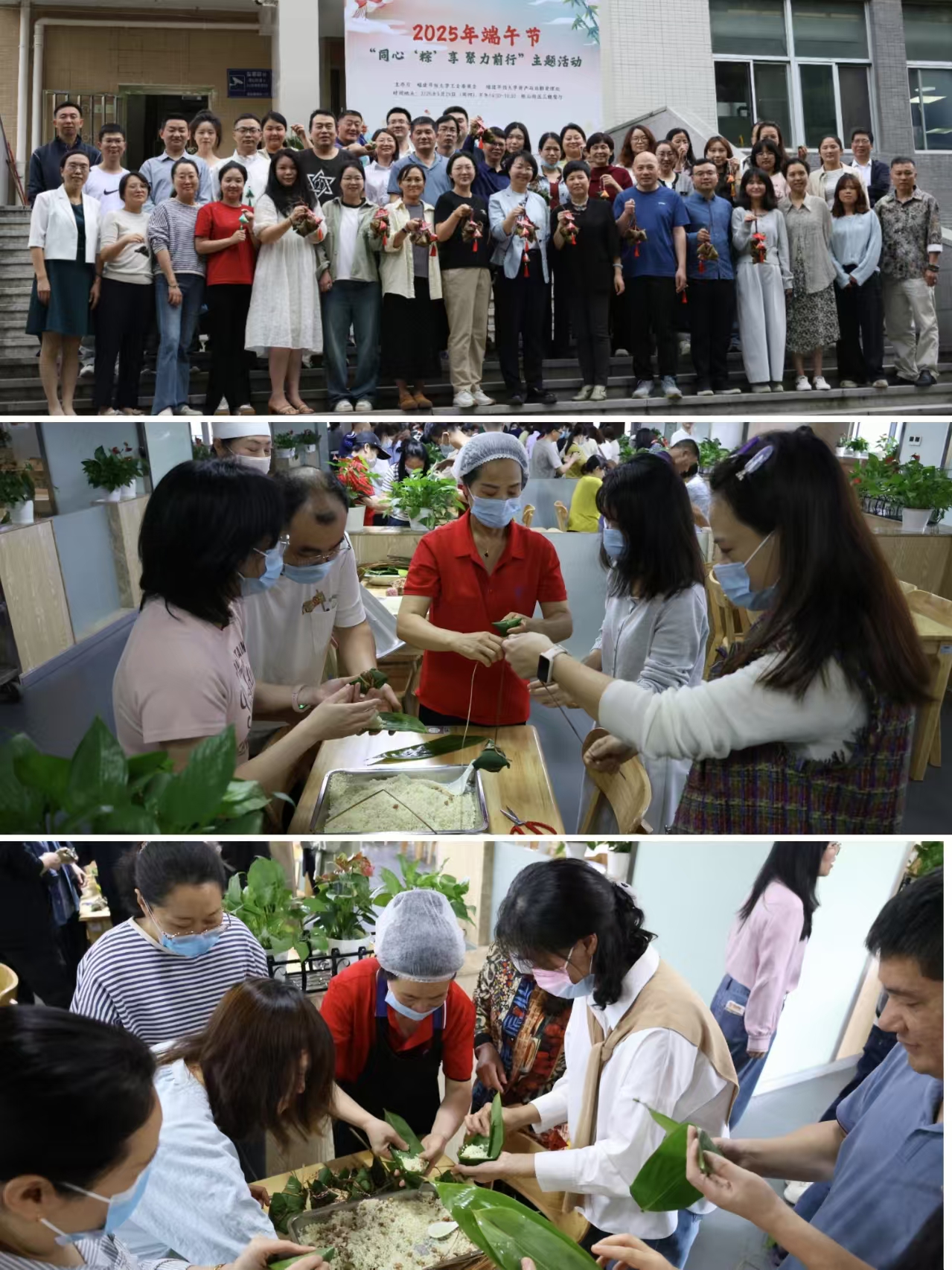 粽香情更浓,聚力谱新篇。活动现场粽香四溢,欢声阵阵。校工会特别邀请食堂师傅现场教授传统粽子包制技艺,吸引了众多教职工热情参与。捋叶成筒、填米压实、缠线定型......在师傅的悉心指导下,新手们从手忙脚乱到渐入佳境。大家纷纷表示,通过亲手包粽子,不仅掌握了传统技艺,更深切感受到了非物质文化遗产的独特魅力。活动还特别设置了送香囊环节,载满祝福的艾草香囊既传承了驱邪避疫的传统寓意,又为节日增添了别样色彩。此次活动不仅让教职工体验了传统节俗的乐趣,更增强了集体归属感,为推进学校高质量发展注入温暖力量。