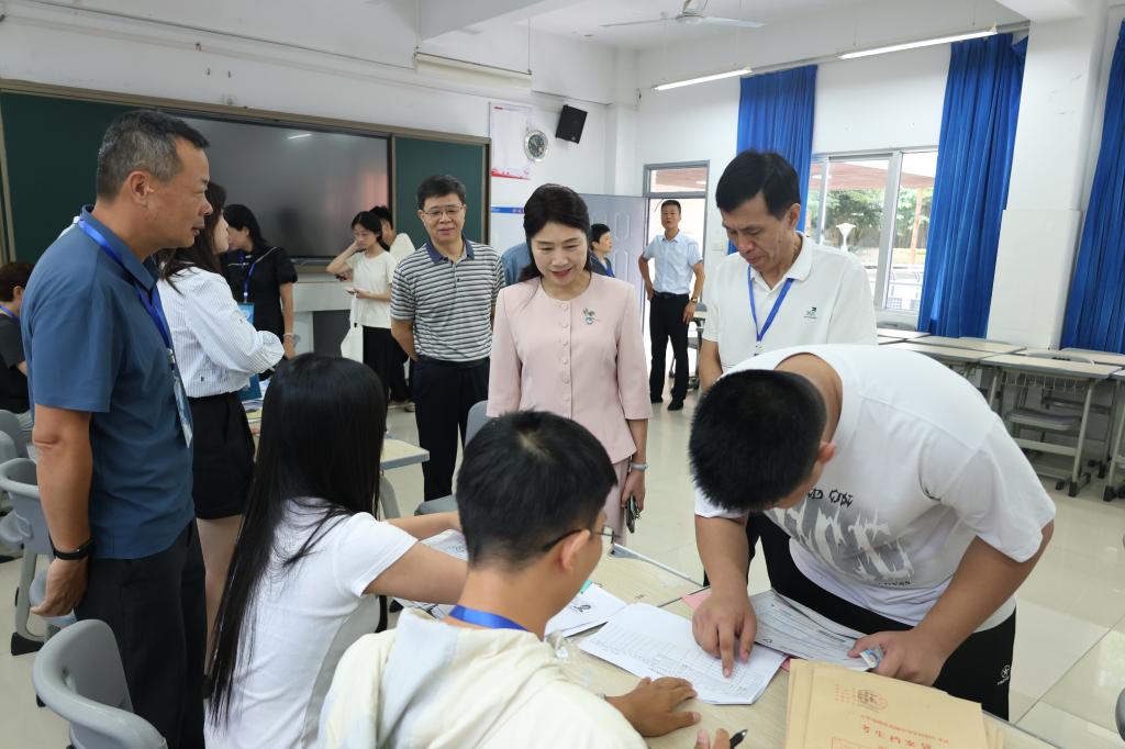 庄莉一行深入到迎新现场,了解报到流程、志愿者安排等情况,慰问奔波在迎新一线的师生员工。看到新生顺利办理入学手续,她主动上前与新生及家长交流,询问入学感受,鼓励新生珍惜职业教育学习机会。随后,就新生入学工作与职业学院负责人进行了交谈,对职业学院招生工作成效及高效流畅的迎新安排给予了肯定。