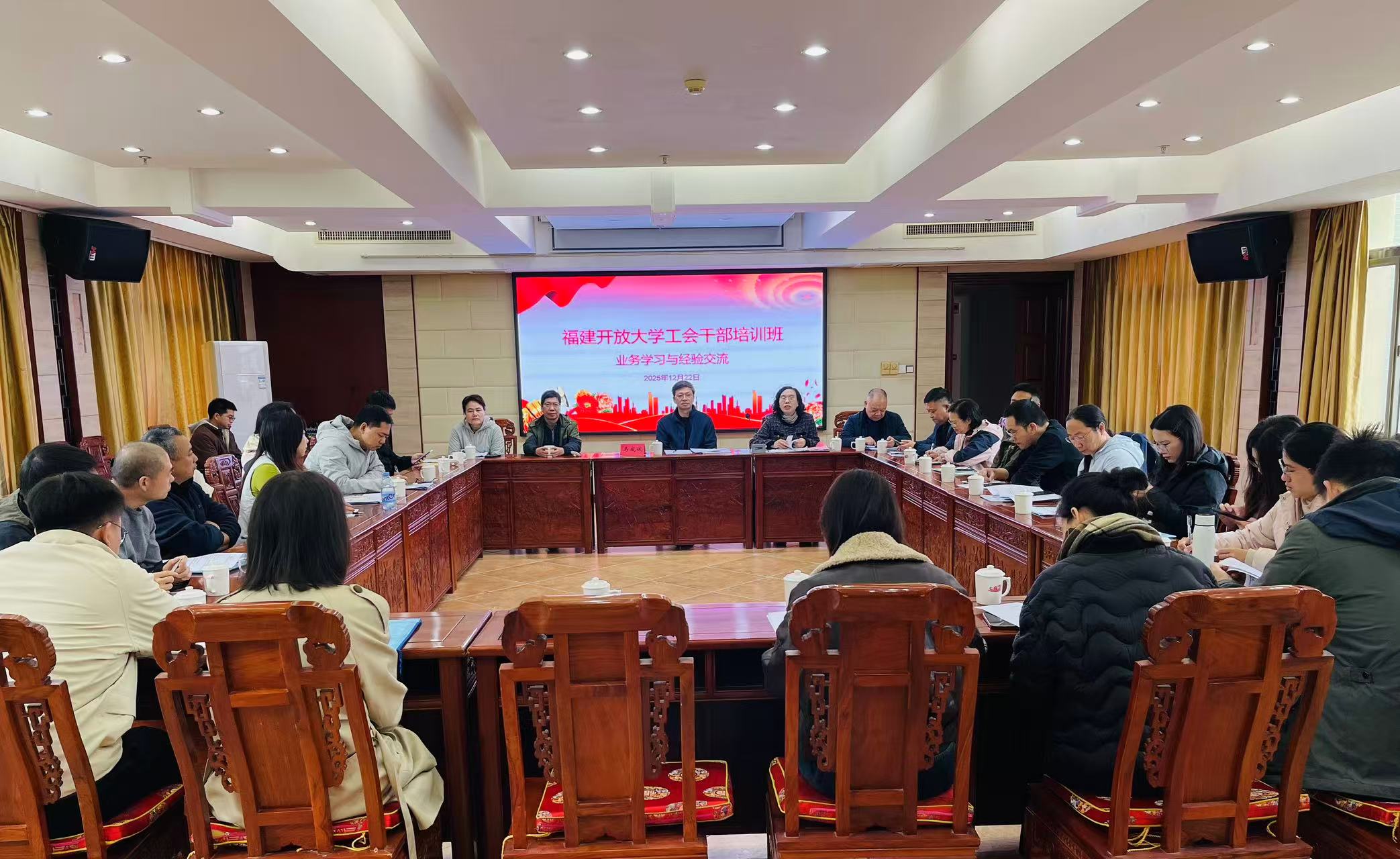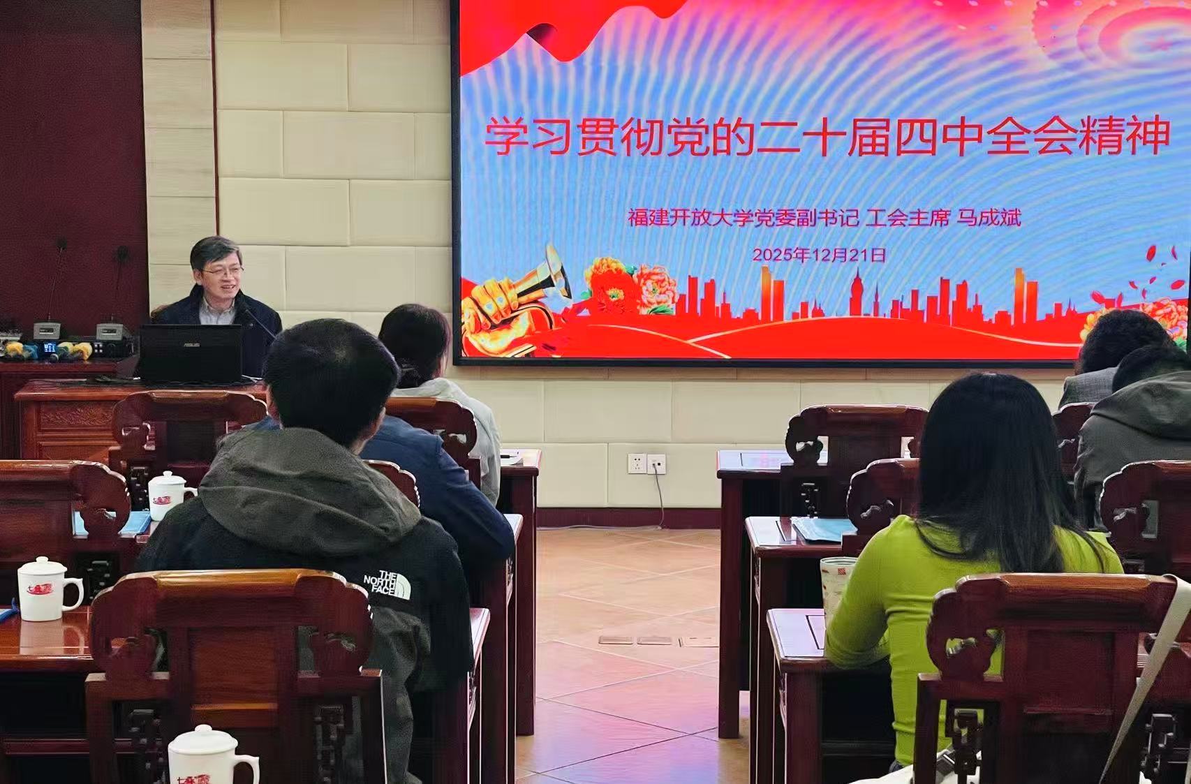 为深入学习贯彻党的二十届四中全会精神,切实加强我校工会干部队伍建设,全面提升工会干部的政治素养、业务本领和服务效能,12月21日至22日,校工会在闽清组织举办2025年工会干部培训班。校党委副书记、工会主席马成斌出席开班仪式并作专题讲话。校工会委员、各工会小组长及积极分子共27人参加培训。