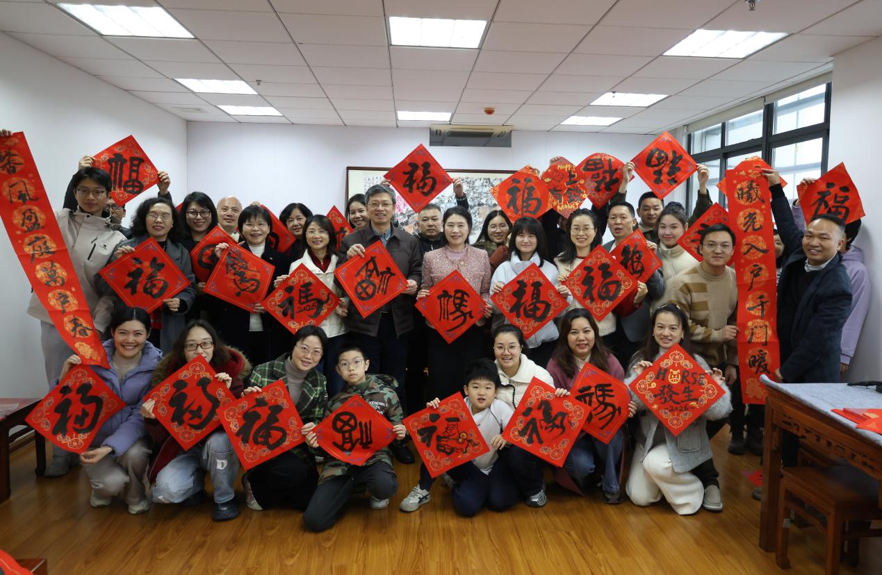 岁末天寒,墨香暖心。在2026年丙午马年新春佳节即将来临之际,为传承中华优秀传统文化,营造喜庆祥和的校园氛围,1月28日,学校工会联合终身教育服务中心,在桂山、左海两校区同步开展“翰墨迎春马上有福”迎新年写春联送福活动。校党委书记庄莉、党委副书记马成斌出席并参与活动,为教职工送上新春祝福。