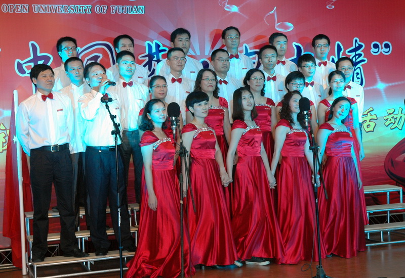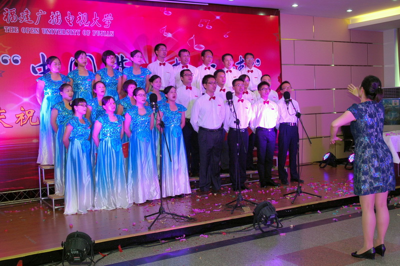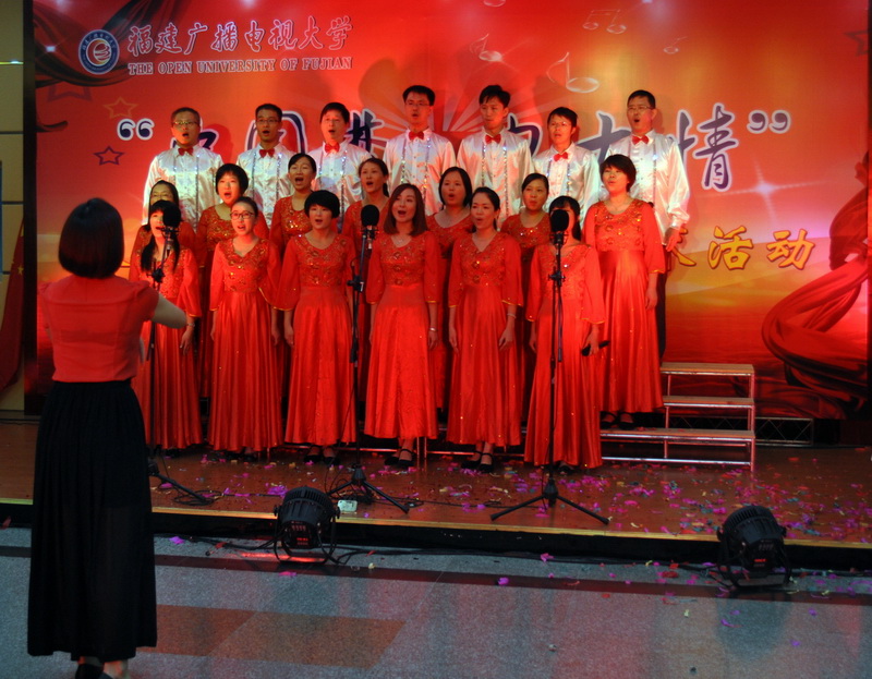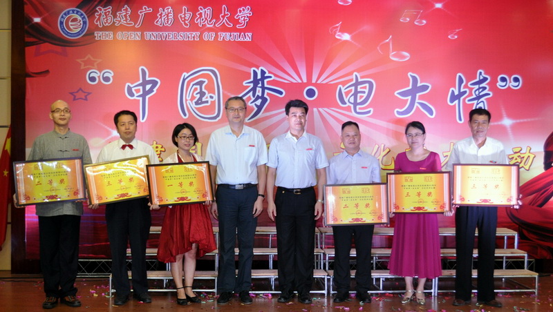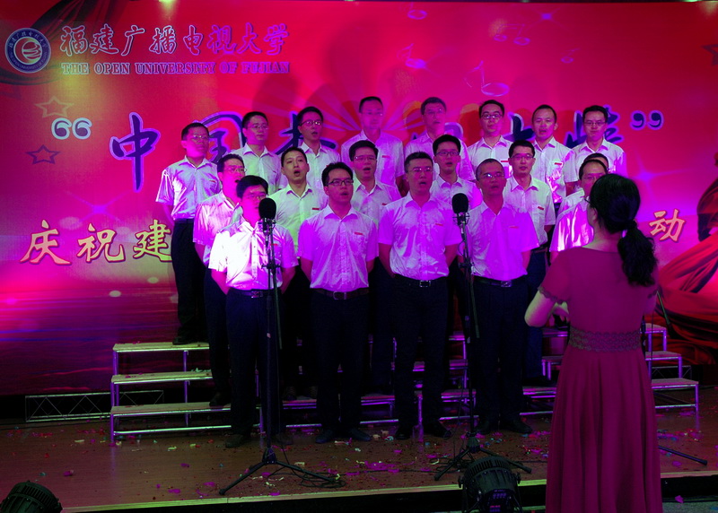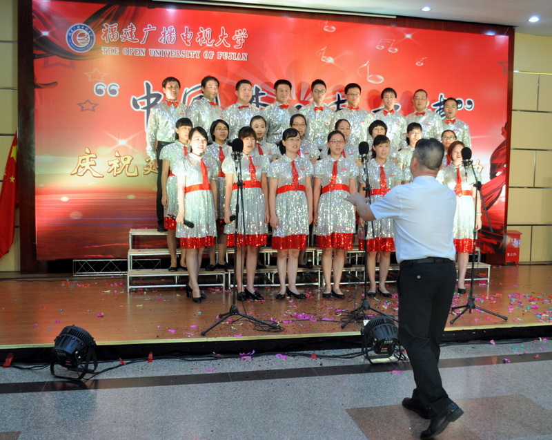 庆祝活动以歌颂党、歌颂社会主义祖国和改革开放伟大成就为主题,以丰富校园文化生活、营造国庆的喜庆氛围为宗旨,积极弘扬时代主旋律和福建电大“拼搏创新、知行合一、有教无类、奉献天下”的大学精神。6个教工代表队及校团委青年艺术团同台献艺,形式活泼,品类多样,异彩纷呈。活动现场,歌声飞扬,音乐流淌,衣袂飘飘,欢声雷动,合唱与曼舞相结合,琴韵与茶香共交融。迷幻的灯光下漾着温馨,欢娱的笑脸上写着喜悦,这是繁忙工作之余的淡定释放,是才艺交流中的密切合作。经过2个小时激烈而欢快的角逐,由党政办、党工部、纪检监察、校团委组成的“梦之队”以一曲深情嘹亮的《祖国不会忘记》摘取一等奖,由人事处、规划处、科研处、工会、教务处、财务处、学生处、招生办组成的“超梦队”和由高职院、远教中心、培训学院、社教处、教师学院、继教院、开放院组成的“希望队”获二等奖,教学处的“亮剑队”、晋安校区的“和谐队”和由技术处、考试中心、教材中心、基建办组成的“腾飞队”获三等奖。