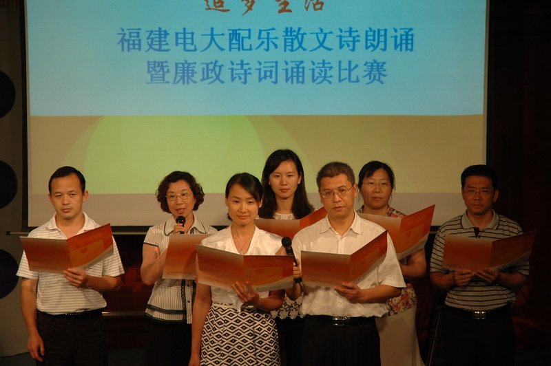 经过一天的激烈角逐,教务处党支部林隆俤获得廉政诗词诵读一等奖,教学处文经法工会小组孔敏、徐运良获得配乐散文诗朗诵一等奖。